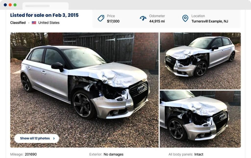 Gain access to ‘Auto Detail Records’ advanced global vehicle history database—designed for precision and reliability. Instantly uncover essential insights including accident reports, repair records, and theft history from over 20 countries, empowering informed automotive decisions with confidence.